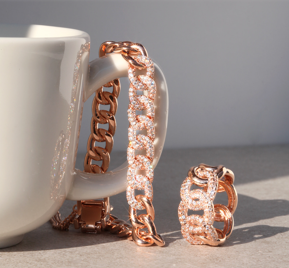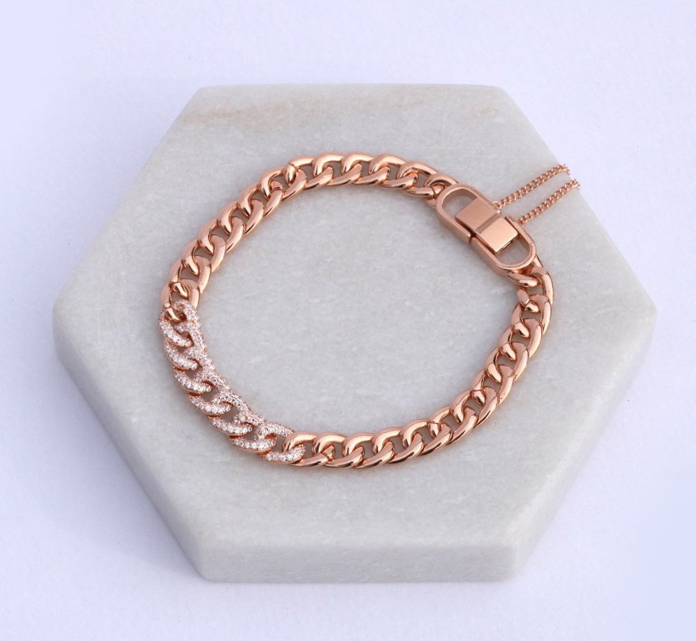 ボールドでカーブの入ったチェーンと華やかなキュービックが